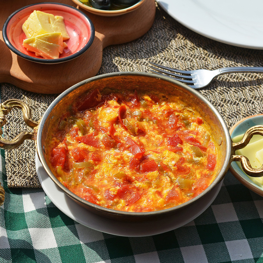 Haşlanmış Yumurta, Zeytin, Çikolata,Bal,Tereyağ, Salatalık, Domates, Kaşar, Beyaz Peynir, Patates Kızartması,Salam